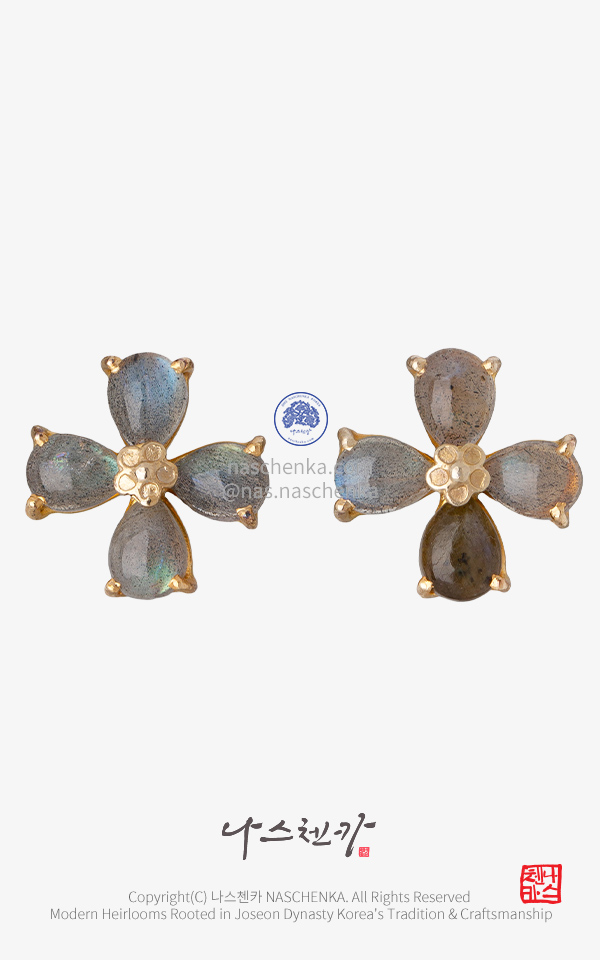 꽃관자, 레브라도라이트, 은 세공 후 도금