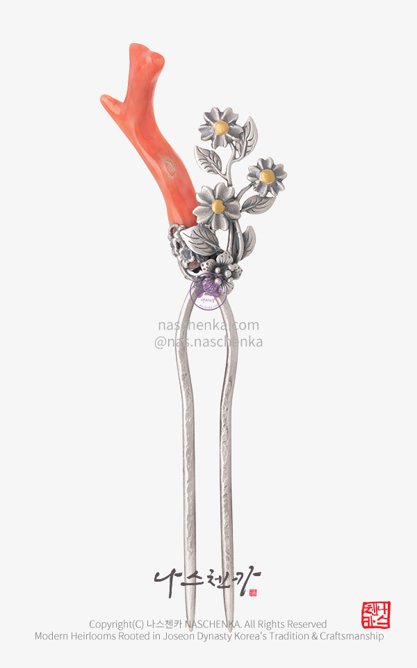 천연 산호로 만든 나스첸카 뒤꽂이는