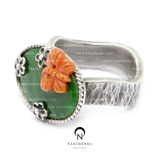 봄의 전령사, 천연 비취와 천연 산호로 제작된