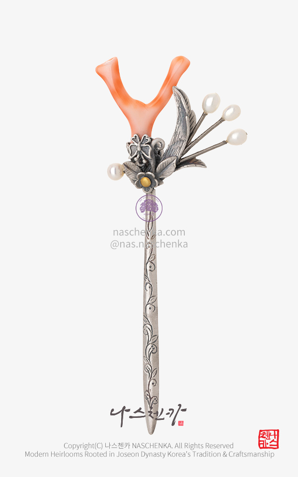 천연 산호, 전통장인의 silver 925 은세공과 금부, 진주 전통 떨