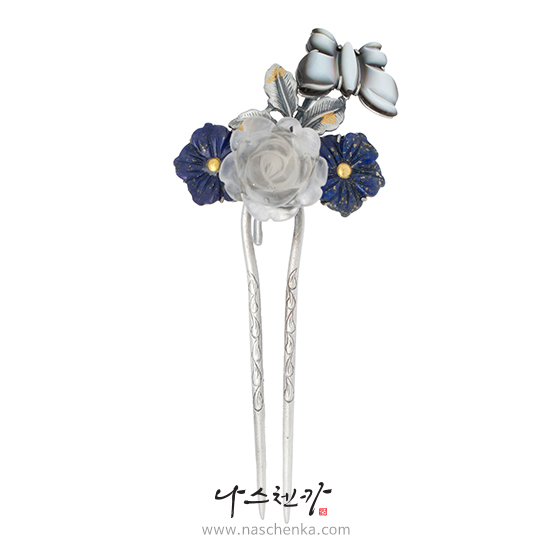 1470709 - 한복 머리장식 머리꽂이 [나스첸카 NASCHENKA] 물머금은 화이트꽃 _ 청금석 뒤꽂이 silver 925