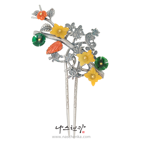 1507342 - [나스첸카 NASCHENKA] 미소 _ 산호 호박 비취 뒤꽂이 _ 결혼 웨딩 한복 전통장신구 한복 머리장식