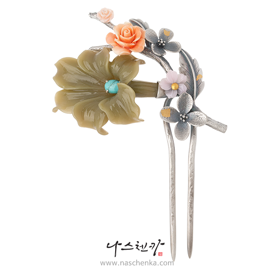 1537080 - 2025 APEC 홍보영상 뒤꽂이 [나스첸카 NASCHENKA] NASCHENKA 꽃 터키석 은 뒤꽂이_금화 10