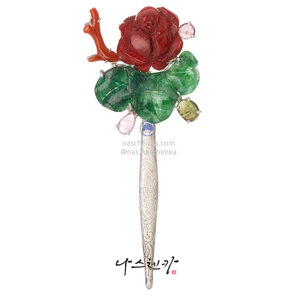 10936432 - 전통 한복 장신구 [나스첸카 NASCHENKA] 추구미 _ 비취 은 뒤꽂이