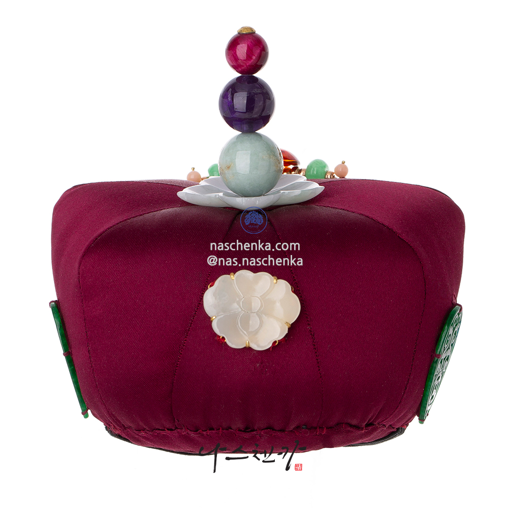 10947406 - [나스첸카 NASCHENKA] 가운데 순수 진품 백옥 꽃 포인트 자주 족두리