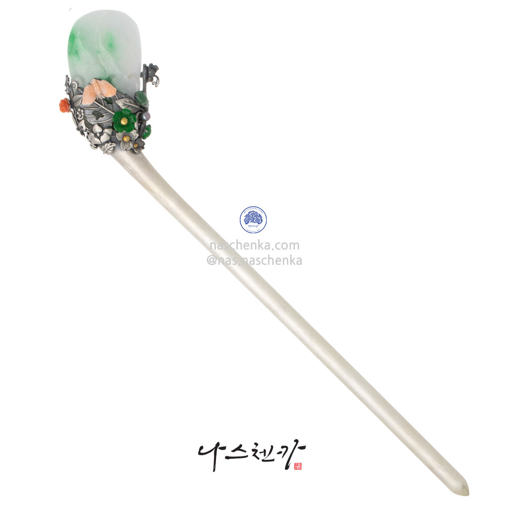 10952048 - [나스첸카 NASCHENKA] 상위 1% 전통장신구 _ 비취 산호 은 비녀 Binyeo