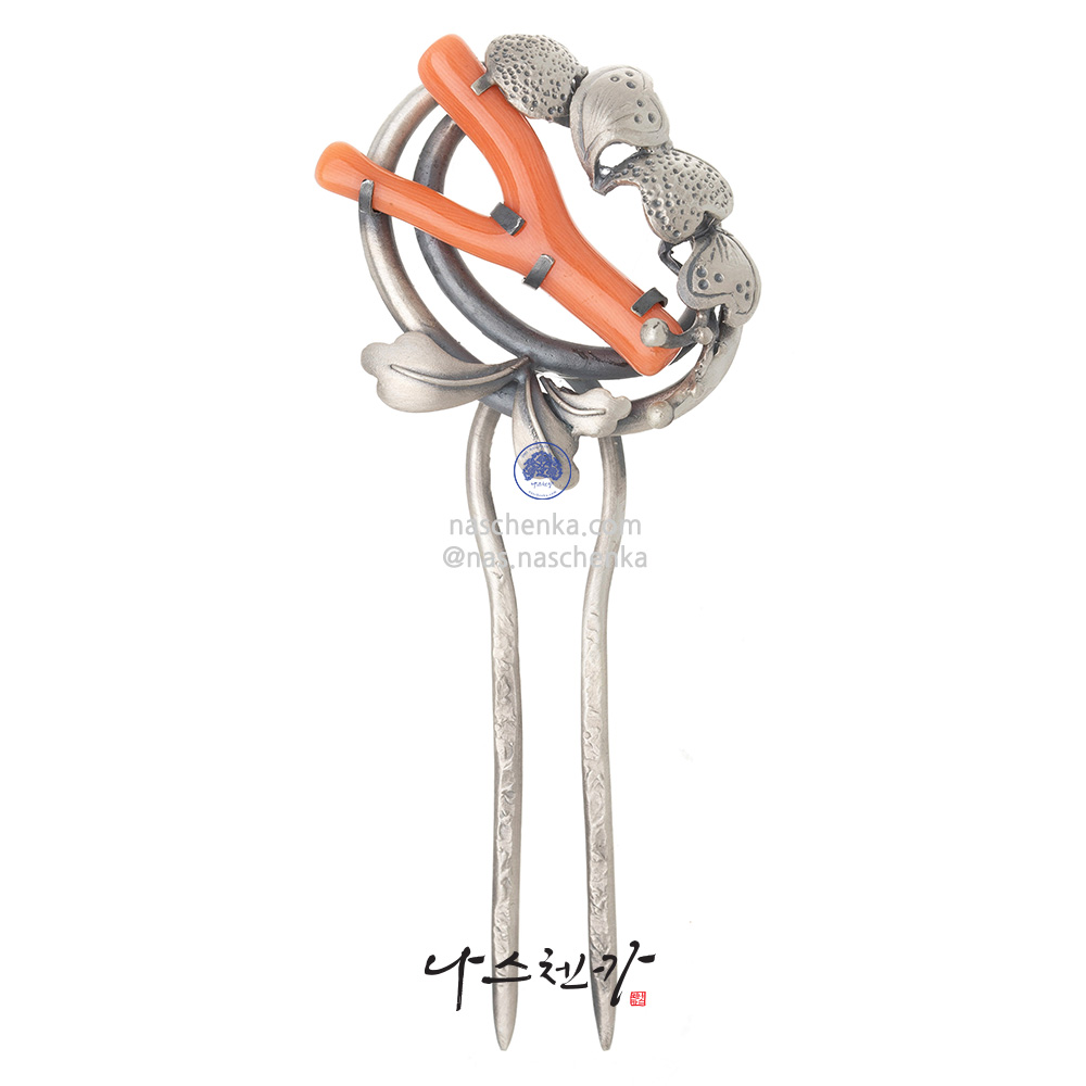 10954643 - [나스첸카 NASCHENKA] 산호 해오름 _ 은 뒤꽂이 Korea Hair pin Silver