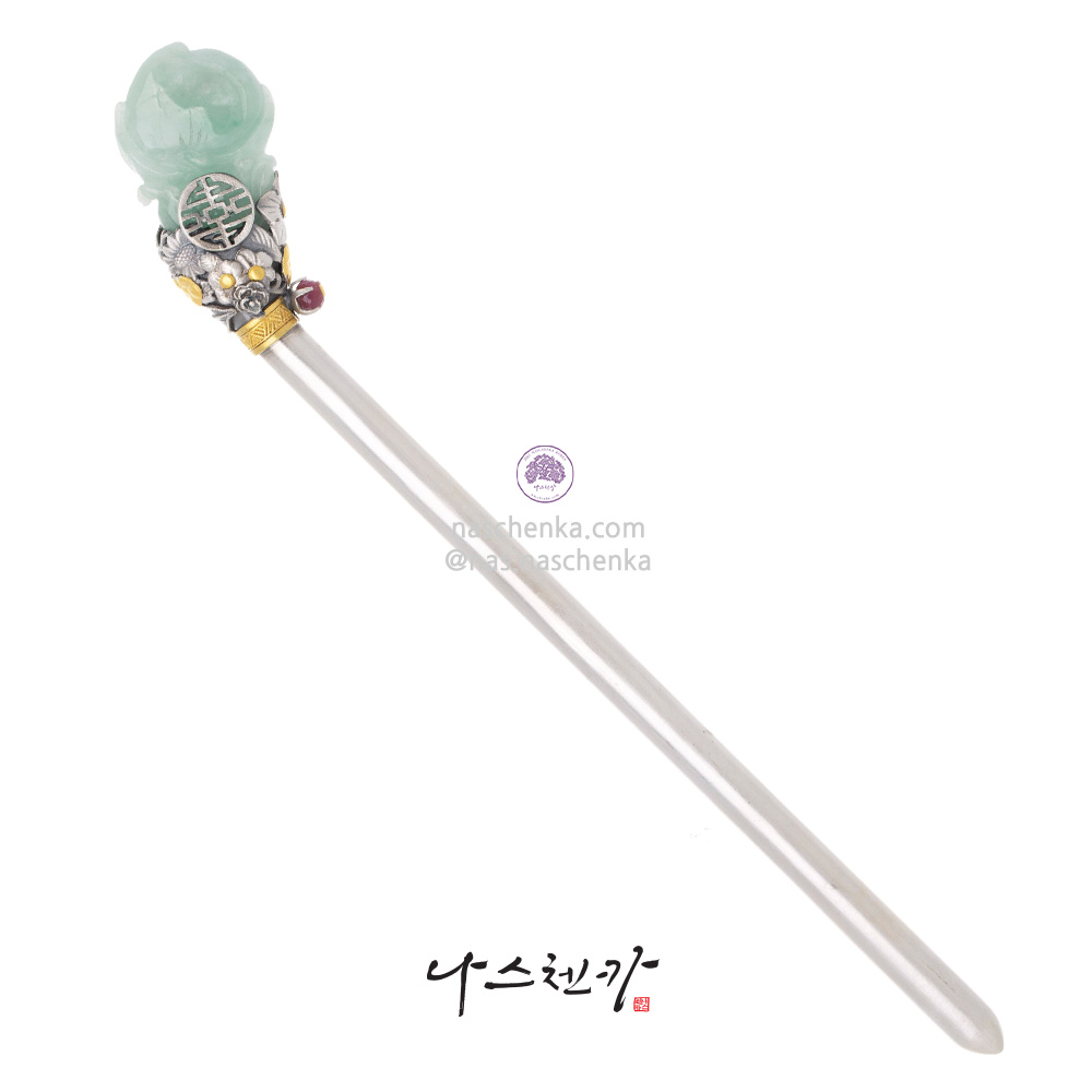 10954786 - [나스첸카 NASCHENKA] 비취 옥조각 꽃문양 은세공 비녀 2 [Jade Flower Silver Hairpin Binyeo]