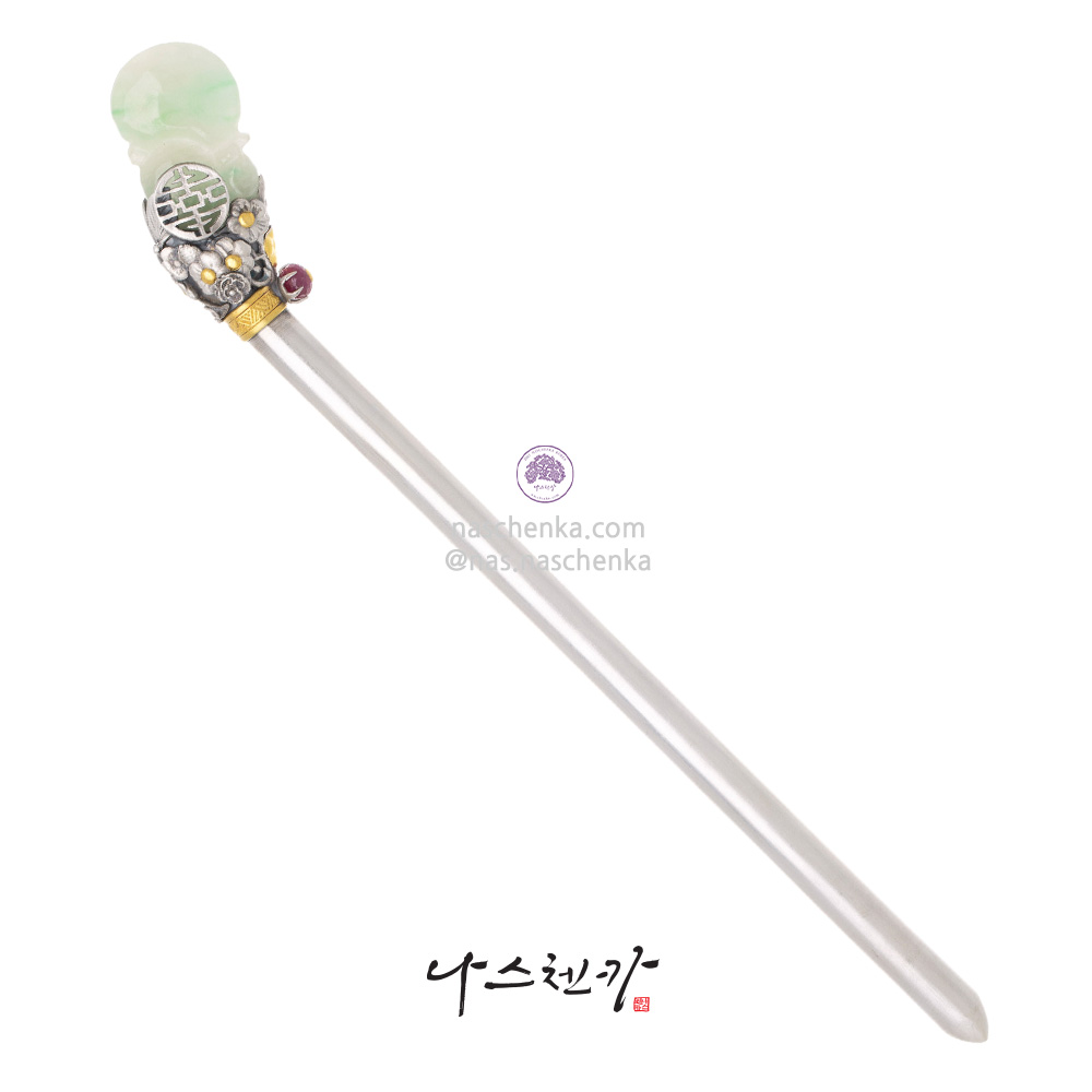 10954788 - [나스첸카 NASCHENKA] 비취 옥조각 꽃문양 은세공 비녀 4 [Jade Flower Silver Hairpin Binyeo]