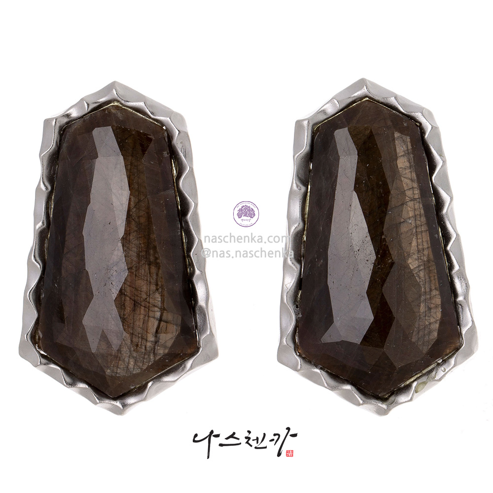 10954790 - [나스첸카 NASCHENKA] 각진 딥그레이 사파이어 귀걸이