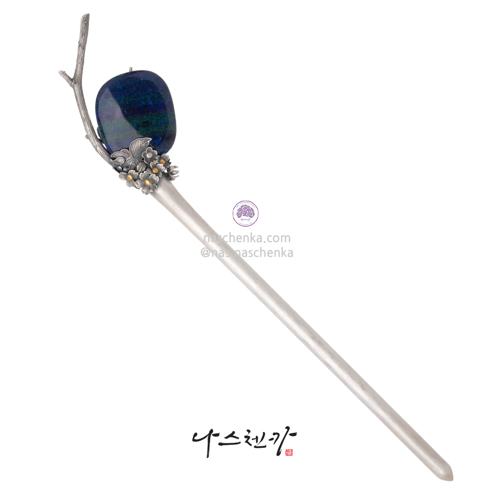 10956786 - 전통 비녀 [나스첸카 NASCHENKA] 흑청 오팔 매화지 은비녀 _ Natural Opal Plum Blossom Silver Binyeo