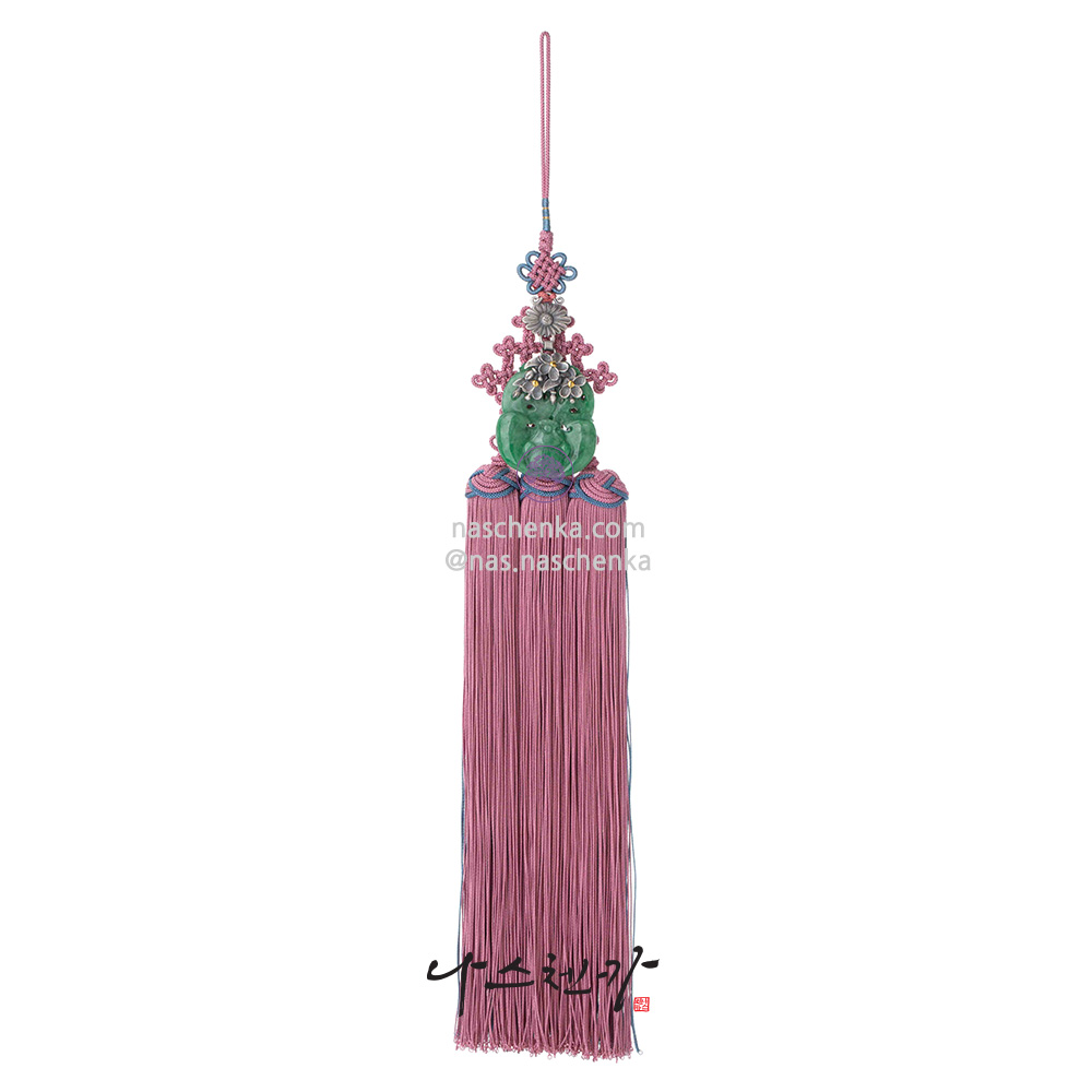 10956359 - [나스첸카 NASCHENKA] 딥 블루 & 핑크 조화 은장인 금속공예 실크 비취 양면 노리개