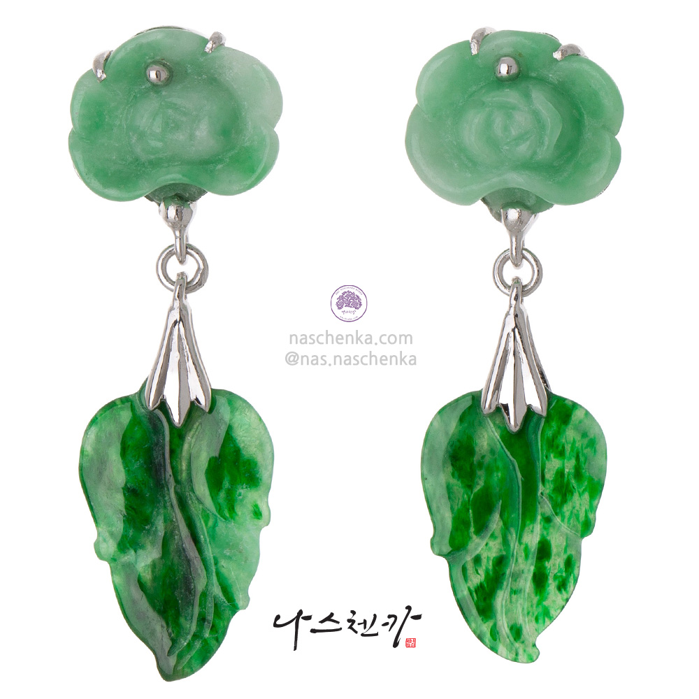 10957976 - [나스첸카 NASCHENKA] 비취 화엽 귀걸이 (Jade Blossom & Leaf Earrings)