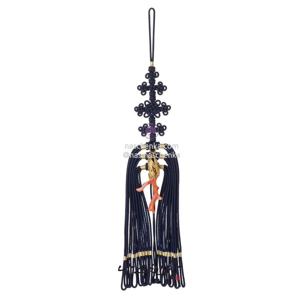 10958042 - 전통 명주 매듭 노리개 [나스첸카 NASCHENKA] 고전의 미학 _ 네이비 낙지발에 천연 산호 가지 노리개 은세공