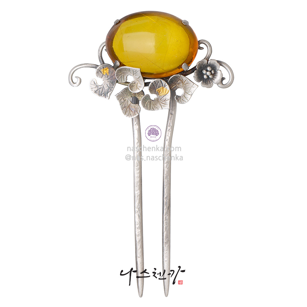 10958572 - 한복 고급짐을 책임지는 천연 호박 금파 은 뒤꽂이