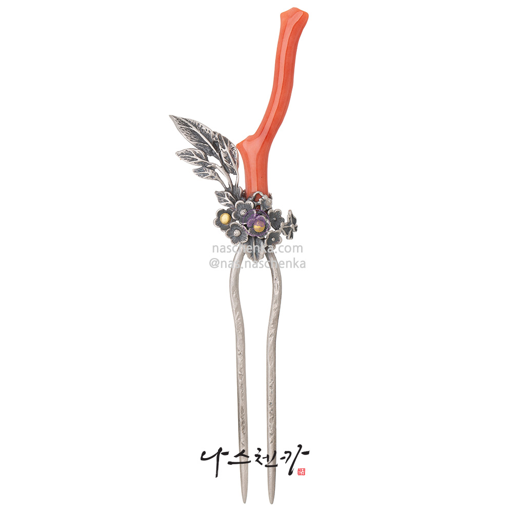 10956953 - 산호지화 — 천연 산호 가지 은 뒤꽂이 Sanhojihwa · Natural Coral Branch Silver Dwikkoji