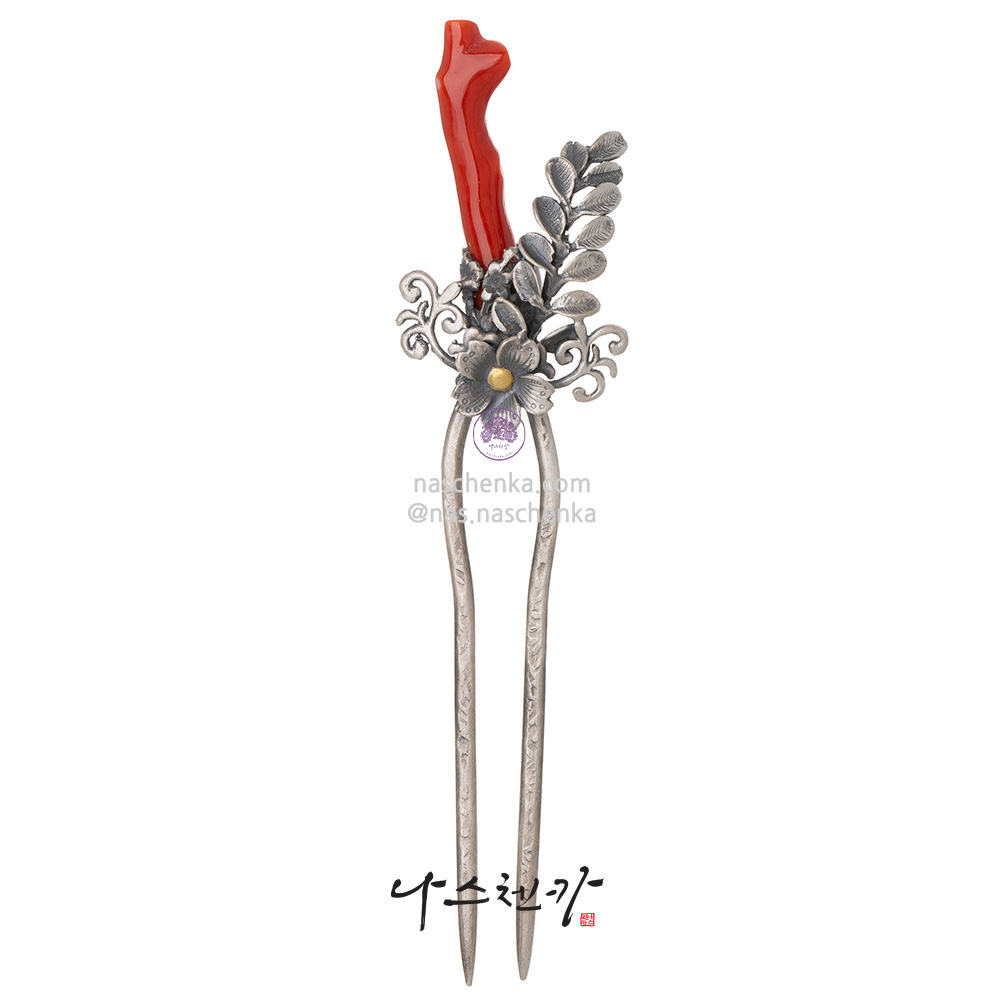 10956954 - 산호지화 2 — 천연 산호 가지 은 뒤꽂이 Sanhojihwa · Natural Coral Branch Silver Dwikkoji