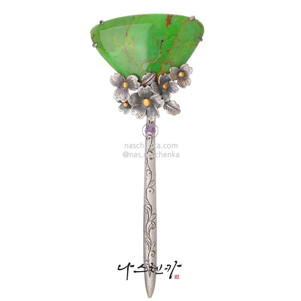 10956761 - 트라이앵글 연두 초록 모하비 터키석 은 뒤꽂이 전통공예 하이엔드 뒤꽂이