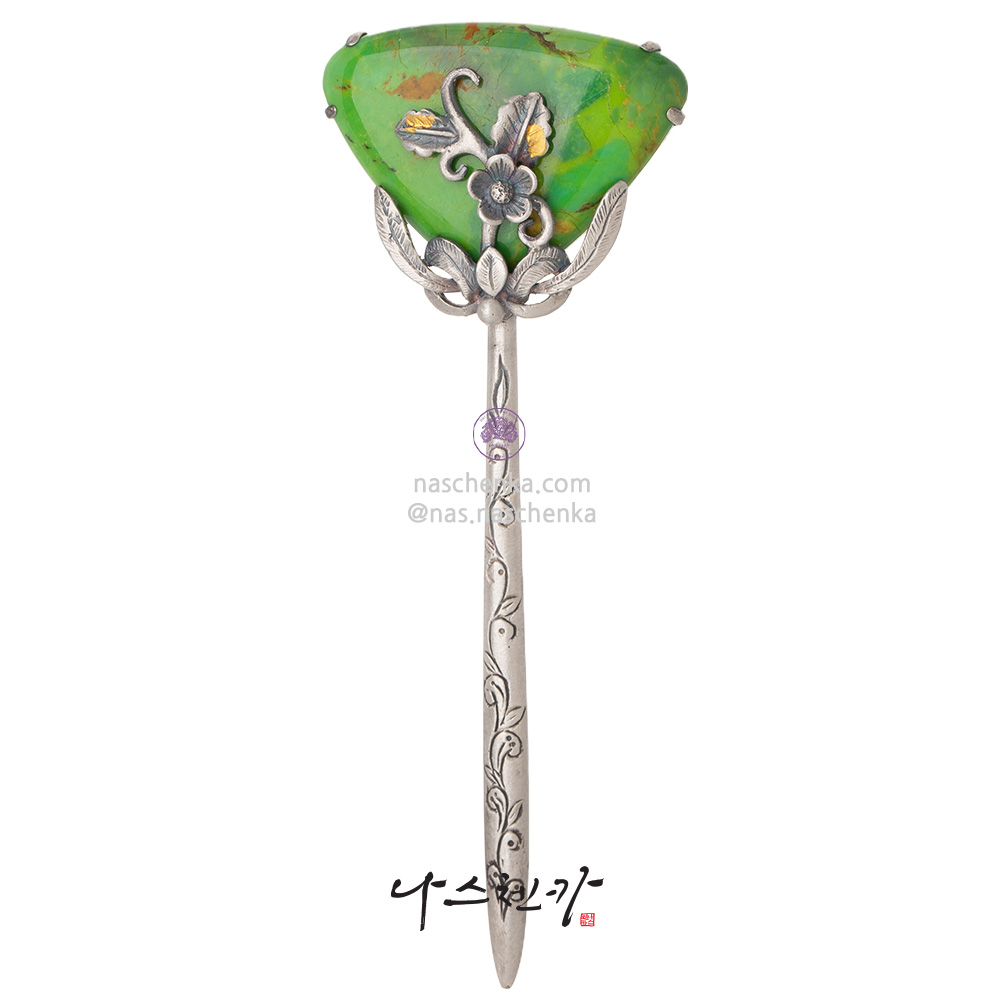 10956762 - 트라이앵글 연두 초록 모하비 터키석 은 뒤꽂이 전통공예 하이엔드 뒤꽂이 2