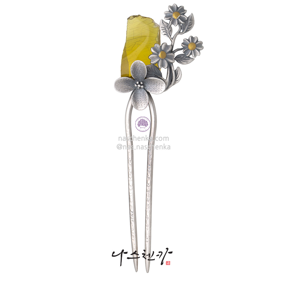 10958689 - 전통 머리꽂이의 로망 나스첸카 NASCHENKA 은 뒤꽂이 원석은 내추럴 호박